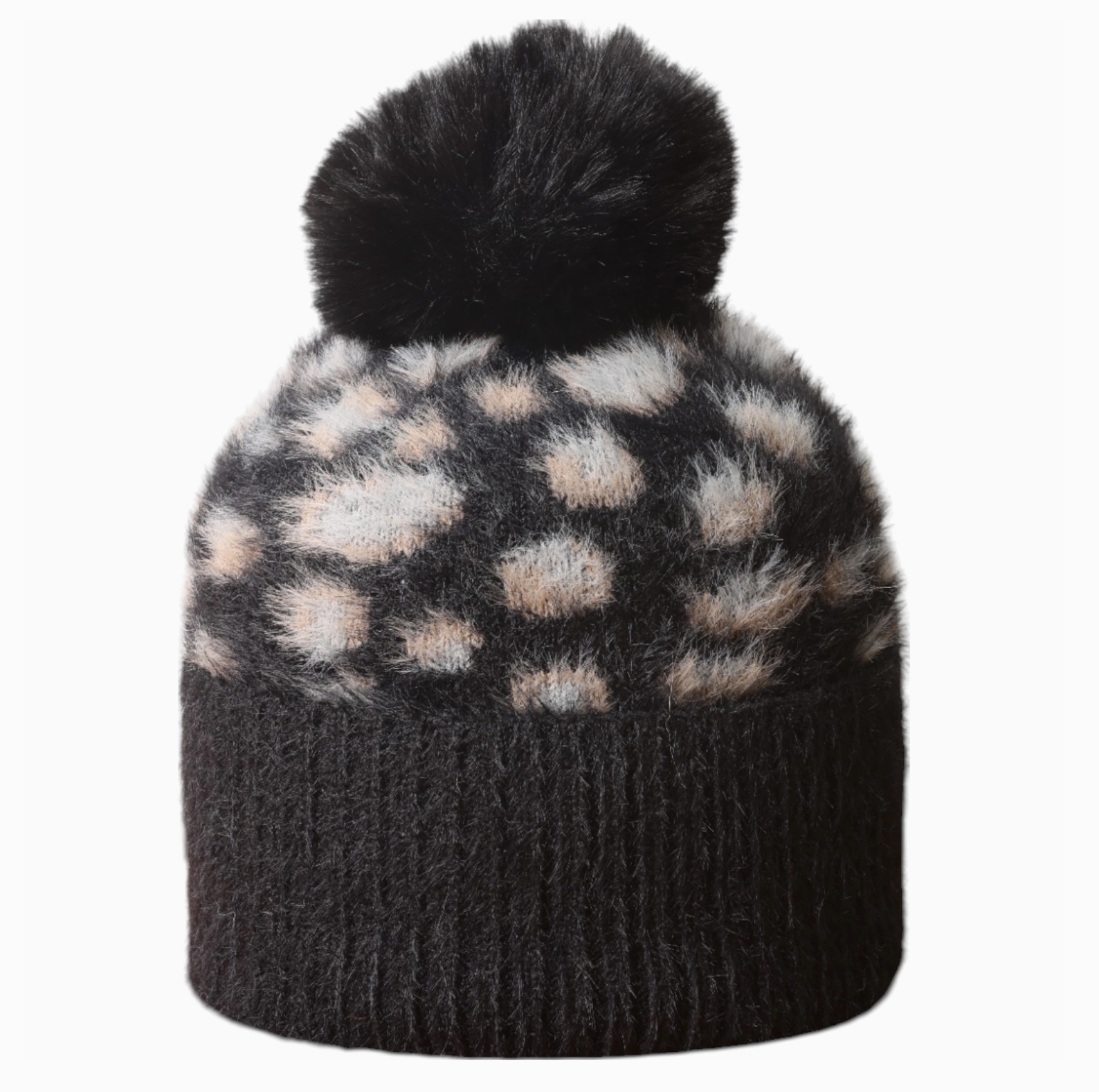 Super soft animal print black and mink toned bobble hat. The inner is so so soft and should be curly hair friendly.