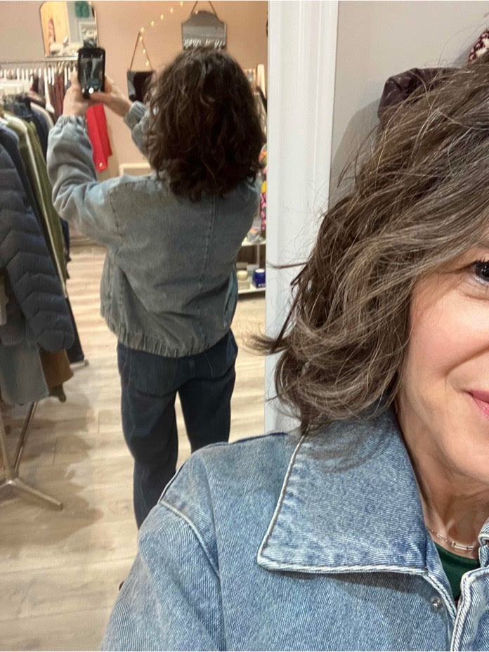 Love this piece! Boxy denim jacket with ruched, elasticated waistband and cuffs