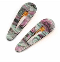 Choose from pink & teal or green marble colourway. Double hair slide