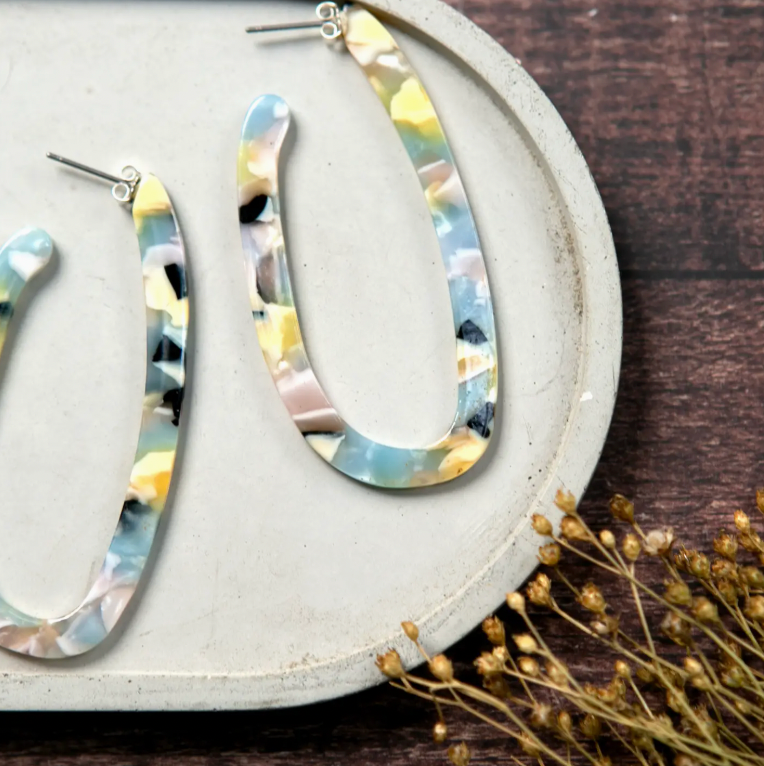 Large acrylic oval hoop studs with a stainless steel pin and silver earring back. These are a great statement piece, perfect for parties, festivals or just every day wear. Details... - Acrylic Oval - 60mm x 30mm
