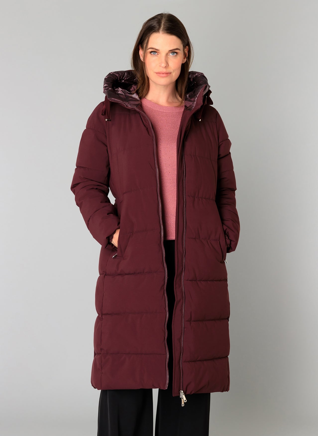 This chunky winter coat from Yest is lined with fake down for extra warmth and comfort. Made from a matt, waterproof material that is water-repellent, the jacket offers optimal protection from the elements. The 2-way zip, side slits with snap buttons and elasticated waist ensure a perfect fit and freedom of movement. The fixed hood and zipped side pockets complete the jacket.